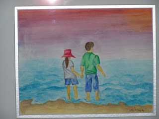 Watercolor: Brother and Sister Watching the Sunset